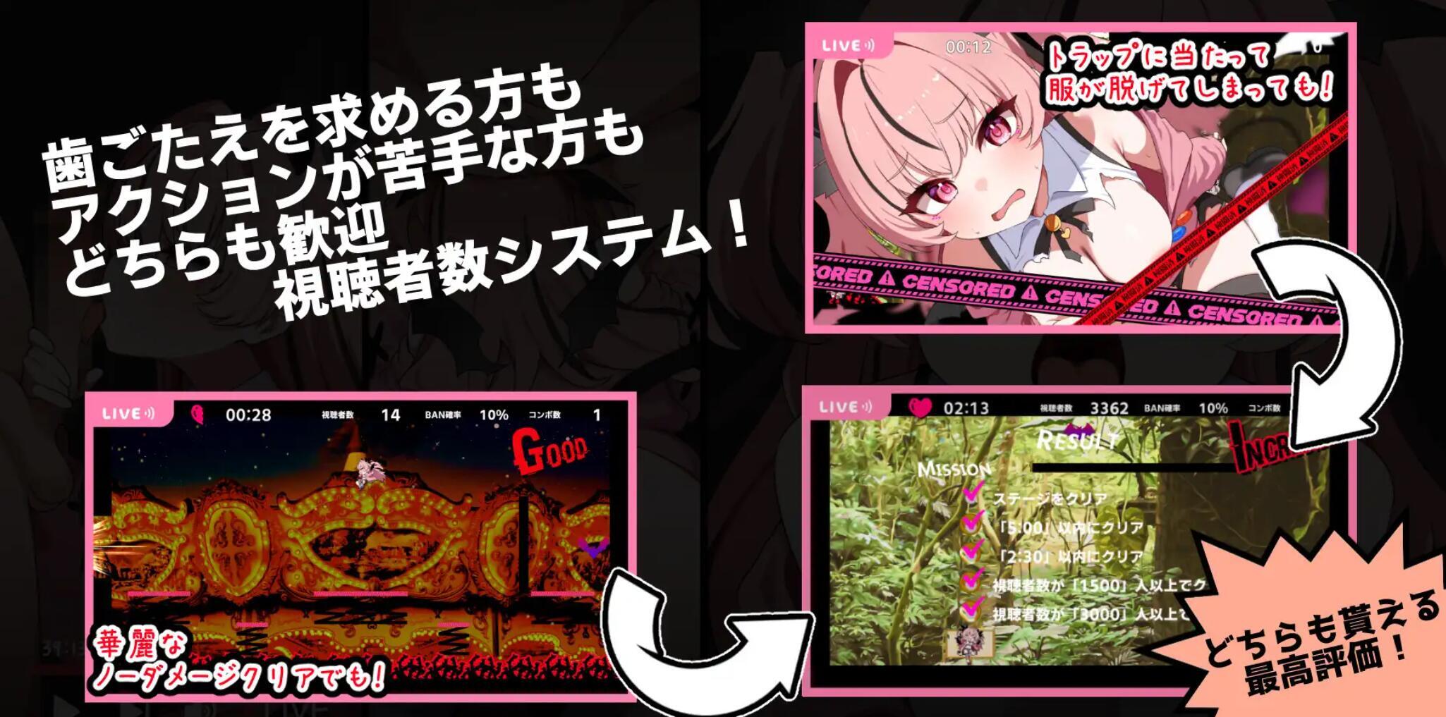 ■即使不擅长动作游戏也没关系!?通过脱衣系统吸引观众赚钱!