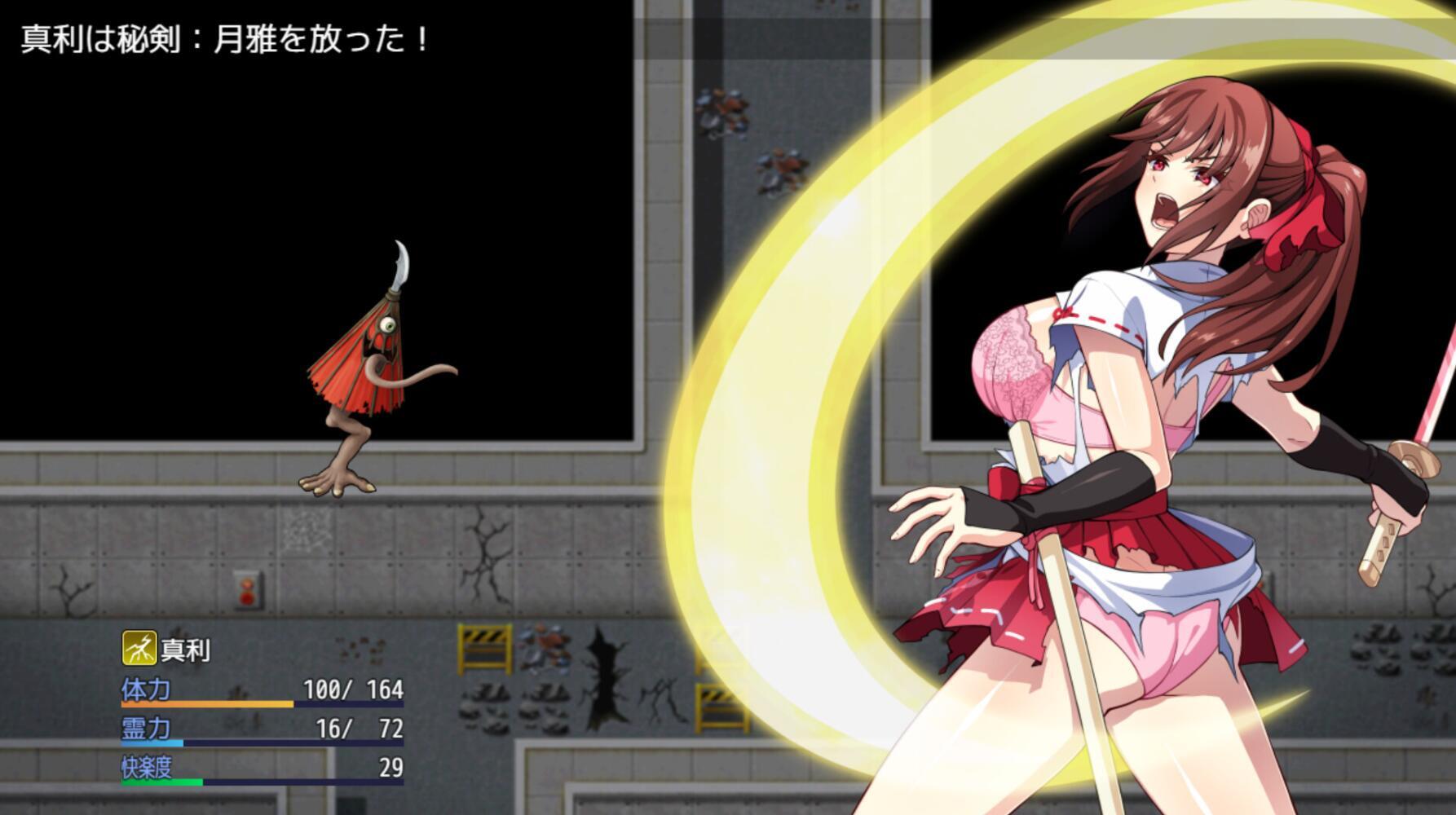 在战斗中,真利的(HP)归零时,就会败北。然后发生被战斗对象的妖魔凌辱的「败北H」情景。