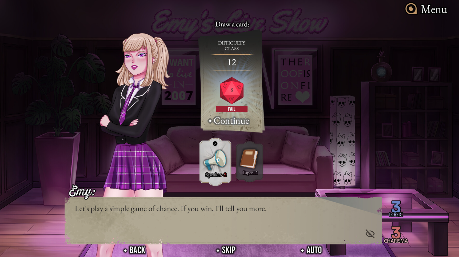 艾米直播秀:四位性感证人的案件是 (EmyLiveShow: Case of Four Hot Witnesses)一款带有骰子技能检定机制的情色视觉小说。提升你的逻辑和魅力,审问神秘的证人,了解她们的秘密,当然还要解开主要谜题…你的第一个案件到底是谋杀案还是失踪案?!