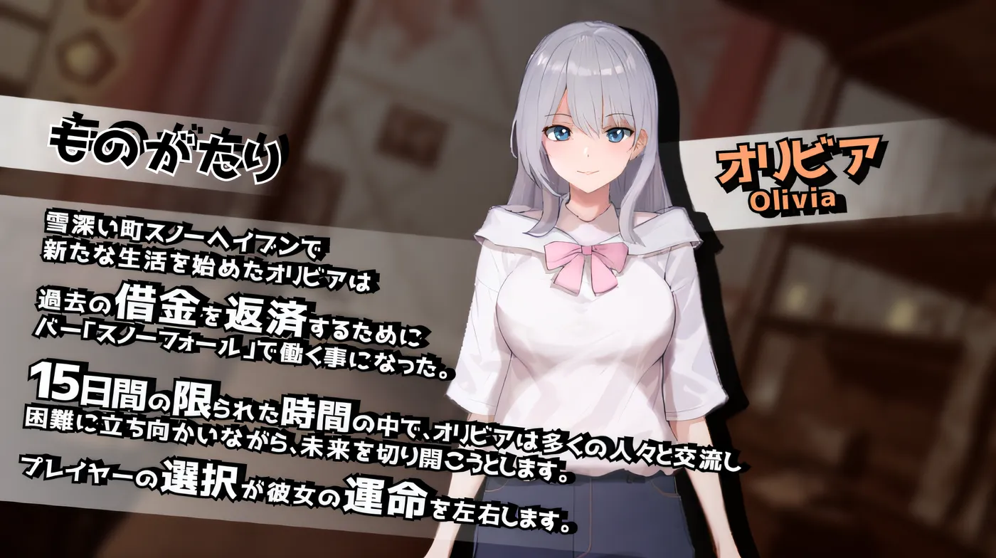 每当选择选项时,奥利维亚的心情和状态都会发生变化,从而导致不同的事件和结局。